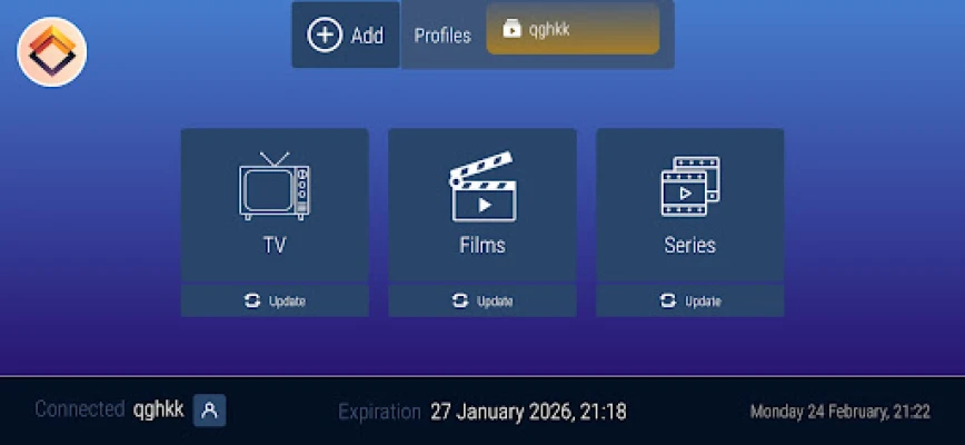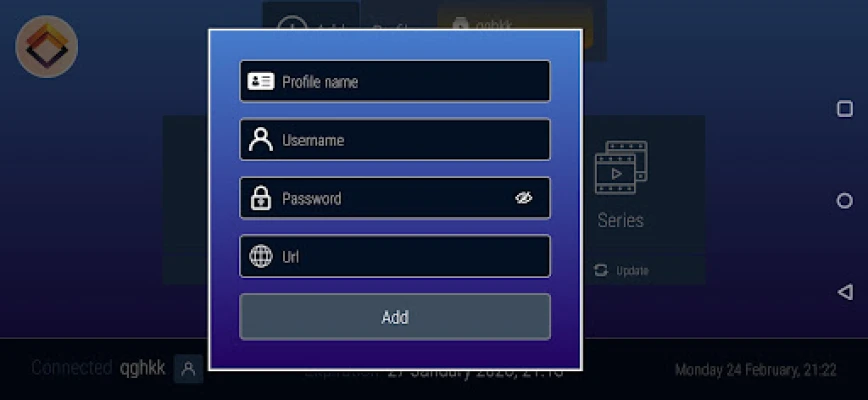 Watch live TV, movies, series with your Xtream account. Simply add your profile (username, password and url) and enjoy your IPTV provider's live channels and VODs.