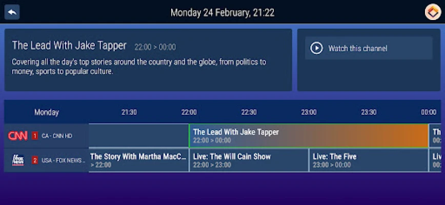 * TV guide with all programs in the selected list (recommend to use this from your favorites), option to replay if available