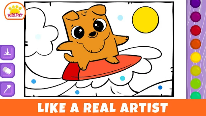 - 4 farklı oyun türü: Bulmacalar, Çıkartmalar, Serbest çizim ve Boyama