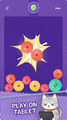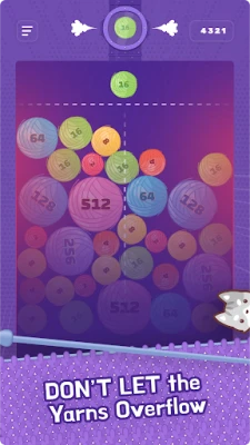 🧶 Merge to grow – Combine matching yarn balls to build mega puffballs.