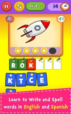 Çocukların İngilizce ve İspanyolca olarak kelimeleri yazmayı ve tanımayı öğrenmelerine yardımcı olun. Eğlenceli resimlerle bu oyun, her gün kelime becerilerinizi geliştirmenize yardımcı olur.