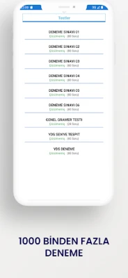 Öğrencilerin sınavlara hazırlık için YDS(Yabancı Dil Bilgisi Seviye Tespit Sınavı) gibi önemli dil sınava hazırlanan kullanıcılar için özel olarak tasarlanmış, bir test çözme uygulamasıdır. İçeriğinde, geçmiş yıllarda çıkmış soru ve özel olarak hazırlanan testler yer almaktadır. Kullanıcılar, internete ihtiyaç duymadan offline (internetsiz) olarak bu testleri çözebilir, böylece her an her yerde sınav pratiği yapma imkanına sahip olurlar.