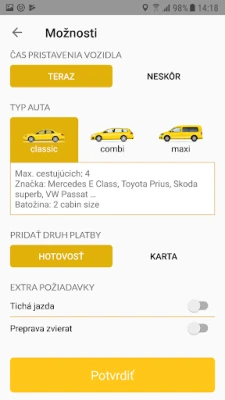 - priamo na telefóne kedy, kde, odkiaľ a aký taxík po Teba príde (ŠPZ, farba, typ)