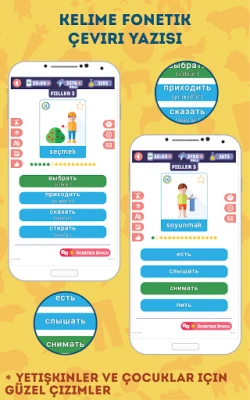 Uygulamamız Rusça kelimeleri hızla ve kolayca ezberlemenize yardımcı olmak için görsel ve yankı belleğinizi kullanacak şekilde tasarlandı!