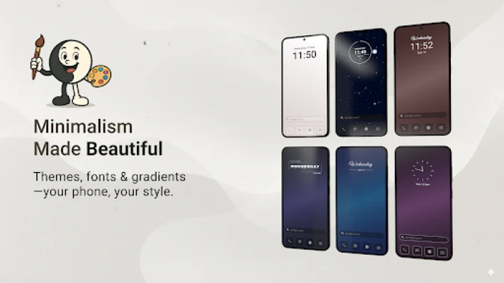 • Curated themes: True-black for battery savings, pastels, gradients, or subtle 3D – all with auto light/dark switching