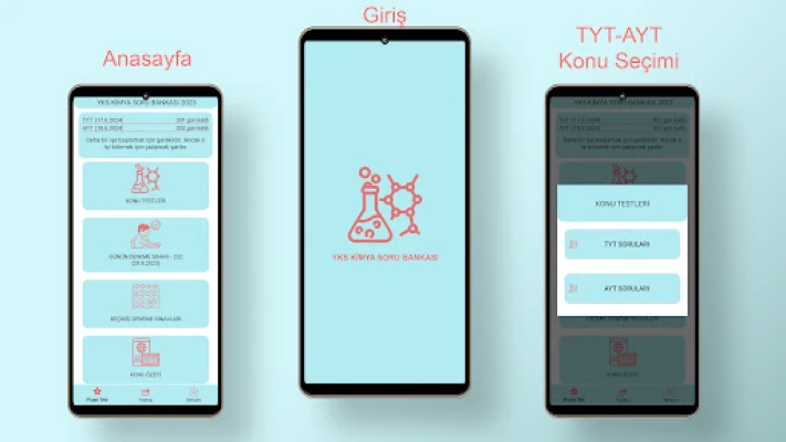 YKS KİMYA SORU BANKASI Uygulaması İçeriğinde TYT - AYT Olmak Üzere 13 000+ den Fazla Soru Barındırıyor.