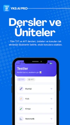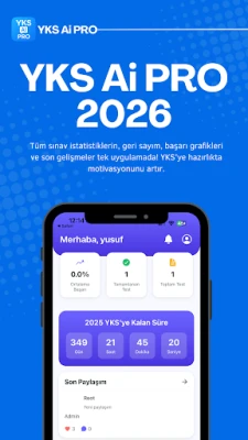 YKS AI Pro, Yükseköğretim Kurumları Sınavı'na (YKS 2026) hazırlanan öğrenciler için özel olarak tasarlanmış, hem TYT hem de AYT aşamalarını kapsayan nihai sınav hazırlık arkadaşınızdır. Gelişmiş yapay zeka teknolojisiyle desteklenen uygulamamız, güçlü ve zayıf yönlerinize göre uyarlanabilen kişiselleştirilmiş bir öğrenme deneyimi sunar.