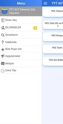 YKS (TYT-AYT) Denemesi Çöz uygulamasında Bütün YKS (TYT-AYT) Türlerinin Denemeleri bulunmaktadır.