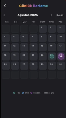 🎯İlerleme ekranı: Hangi gün ne kadar soru çözdüğünü takvimden gör
