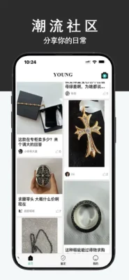 提供专业的奢潮鉴别服务,可鉴定品类涵盖衣帽、鞋履、箱包、饰品、腕表。现支持鉴定品牌: CHROME HEARTS、GIVENCHY、OFF WHITE、BALENCIAGA、THOM BROWNE、GUCCI等。Young也会在完善平台鉴定的基础上,为用户开发各种奢潮资讯、玩家互动交流等功能板块,并持续扩大对奢潮品类的覆盖,让各位玩家都能通过Young来享受到潮流带来的乐趣。