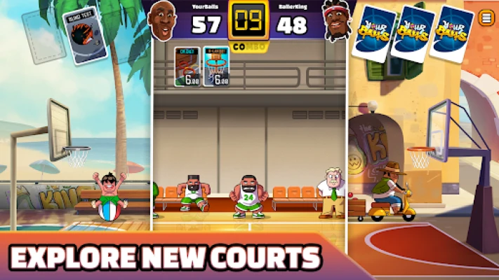 Unlock unique and original arenas and courts that bring you glory and better prizes. The more matches you win, the more chances you have to progress through your basketball career.