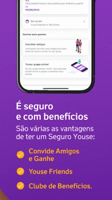 💰 Convide Amigos e Ganhe: todo cliente Youse pode dar desconto pra galera fechar o Seguro Auto e ser recompensado em dinheiro por cada indicação válida.