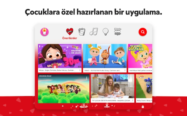 Çocuklar için tasarlanan uygulamada, çocuklarınızın hem kendilerine hem de ailelere hitap eden video içerikleri keşfetmesine yardımcı olun. Kolayca kullanılabilen gezinme araçları ve çeşitli özellikler sayesinde, çocuklarınız internette yeni ilgi alanları keşfederken hayal güçlerini besleyebilir ve öz güven kazanabilir.