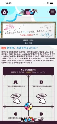 政治や経済など様々な分野で今、起きている話題について、10代の意見を募る「世論調査」のコーナーです。ワンタップで投票できる選択式の世論調査なので、気軽に、そして簡単に自分の意見を社会に発信することができます。