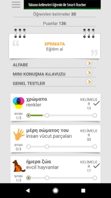 - Kelimelerin bilgisinin test edilmesi eğlenceli ve basit testlerle gerçekleşir:
