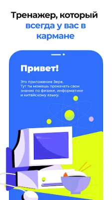 Тренажер Zere - мобильное приложение, которое интегрирует в себя образовательные механики сразу по нескольким предметам. Тут ты можешь прокачать свои знания по физике,математике, информатике и китайскому языку.