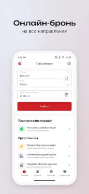 Экономьте своё время с нашим приложением и покупайте электронные билеты на поезда Сапсан, Ласточка, Стриж, Таврия, Аллегро, электрички и премиальные поезда по России, в том числе в Москве, Санкт-Петербурге, Самаре, Краснодаре, Казани, Тюмени, Омске, Анапе и Сочи, а также в Беларусь и Казахстан. Используйте удобный поиск по номеру поезда, вокзалу или расписанию. Стоимость билетов всегда дешевле, чем в ЖД кассе на вокзале.