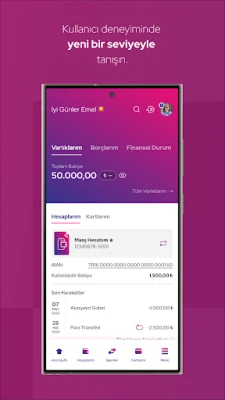 • Para transferi, fatura ödeme gibi işlemleri ana sayfanıza ekleyerek vakit kaybetmeden işlemlerinizi gerçekleştirebilirsiniz.