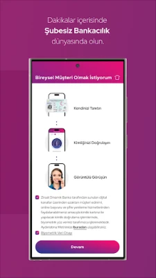 Geleneksel bankacılığın sınırlarını aşan, tamamen dijital ve kullanıcı dostu bir deneyim sunan bankamıza dakikalar içinde müşteri olabilirsiniz.