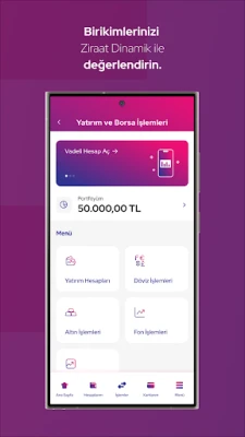 • Ziraat Dinamik Mobil üzerinden istediğiniz döviz cinsinde hesabınızı kolaylıkla oluşturabilirsiniz.