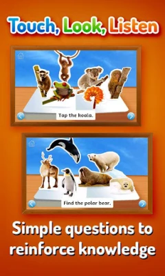 Touch, Look, Listen is a series of preschool learning apps that will delight and encourage young children as they learn their first words. Zoo Animals introduces early learners to over 60 popular animals from around the world. It's also the perfect app for parents and little ones to share, combining superb photographs, simple word labels and friendly narration. In addition, you can turn the app into a language-learning tool for students of all ages, simply by choosing a second language in the menu.