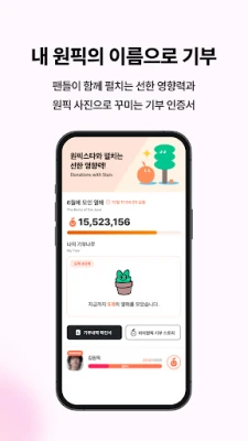 열매를 사용해 최애 이름으로 기부 봉사하고 선한 영향력을 펼칠 수 있어요.