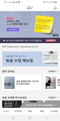 수강신청, 예습, 수업, 복습, 크레딧 구매 등 링글 수강의 전 과정을 앱으로 편하게 이용하실 수 있습니다.