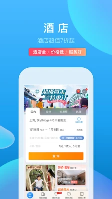 随时随地预订酒店、机票、火车票、汽车票、景点门票、用车、跟团游、周末游、自由行、自驾游、邮轮、旅游度假产品任您选!畅享旅游攻略、旅游保险、旅行特惠。出行、旅游不用愁!