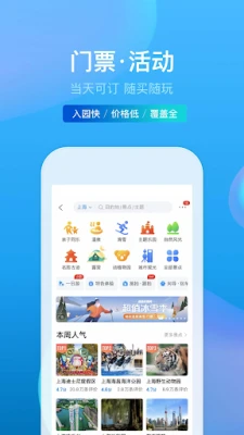 - 门票:提供超实惠的门票预订服务,选择主题聚焦热门的景点门票,推荐度排序,看看去过的人推荐哪些景点门票。在线订购门票,还有折扣再加返现优惠。