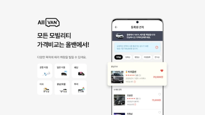 콜밴, 택시, 공항, 웨딩카, 이사, 용달까지 쉽고 빠르게 가격비교하세요.