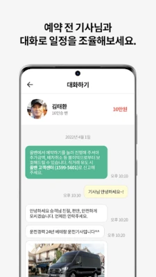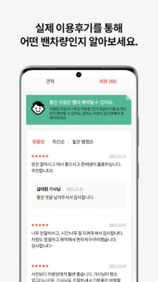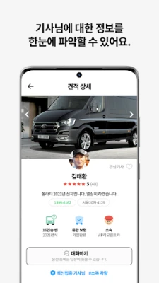 - 실제 차량사진, 편의시설(USB, 와이파이, 카시트 등), 차량연식, 기사님 후기와 평점을 확인할 수 있어요.