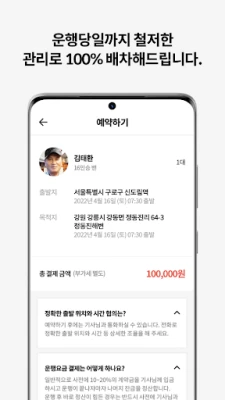 평균 4.9점 친절한 기사님, 100% 배차, 투명한 가격! 365일 24시간 빠른 견적과 예약으로 최저가 이동하세요!