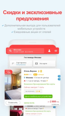 Приложение 101Hotels.com предлагает вниманию гостей не только тысячи гостиниц и отелей, но и апартаменты, квартиры, хостелы, гостевые дома, санатории, пансионаты и базы отдыха. У моря, на первой береговой линии, с пляжем, с парковкой, в Питере или Москве? Легко, переходите в приложение и используйте фильтры! Достаточно установить параметры в необходимом порядке (с кондиционером, с балконом или 5 звезд) и список уже перед Вами.