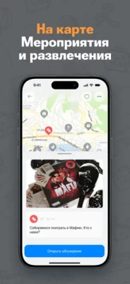 Поездки - Цену за поездку устанавливаете сами.Помощь окружающих - Ставьте точку на карте со волнующим вопросом, все окружающие могут обсудить его в общем чате.Сообщества - Создавайте свои сообщества на карте и подписывайтесь на интересующие вас группы.