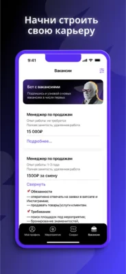Приложение подбирает подходящие предложения под ваш профиль и помогает начать карьеру уже
