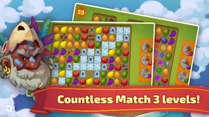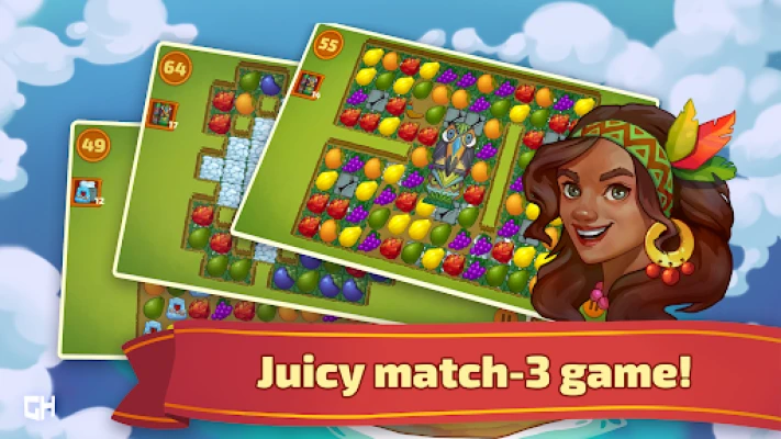 Arrange tropical fruits in a row, trigger powerful bonuses, eliminate obstacles, complete puzzle levels, and free the inhabitants of 11 islands! This game offers a unique blend of fruits and gems that you can match and crush to gain bonuses. Say goodbye to boring cookies, jams, lollipops, and jellies - this game will bring a fresh and juicy spin to your match 3 experience. Experience the magic of casual games and try our new tasty matching puzzle game!
