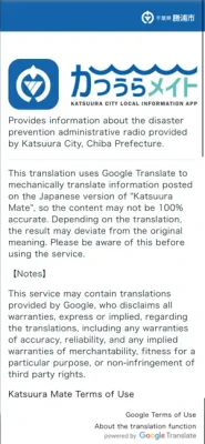 Please note that Katsuura City shall not be held responsible for any loss,damage, costsor expenses arising from the use of this app.