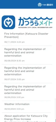 We will deliver information on disaster management administrative radio provided by Katsuura City located in Chiba Prefecture, Japan.