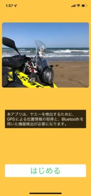 ヤエーアプリは、オートバイがすれ違う時にヤエーの交換を行います。機能・ヤエーを交わした日時と位置情報の記録と表示・ヤエー時に音と通知による知らせ・地図による現在地の表示・ツーリング中のヤエーユーザーの表示・ツーリングコースの記録・ツーリングコースの軌跡表示・安全祈願「ご安全に」の送信・自宅から10km範囲のNOW非表示