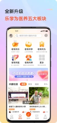 在这里,您的生活可以随走随记,操作简单可一键分享精彩;也可以参与适合中老年朋友特点、丰富多彩的热门活动,去赢取丰厚奖品。我们也相信在数万社交圈子里,您的退休生活会增添许多快乐,遇见一群群志趣相投,同频共振的乐友们。
