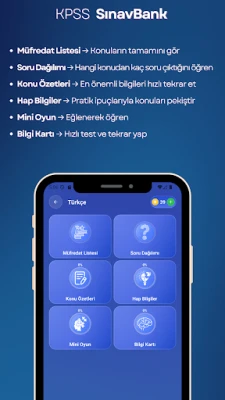 KPSS Sınav Bank, 2026 KPSS’ye hazırlanan adaylar için konu özetleri, hap bilgiler, çıkmış soru dağılımları, testler ve güncel puan hesaplama araçları ile sınav başarını artırmanı sağlar.