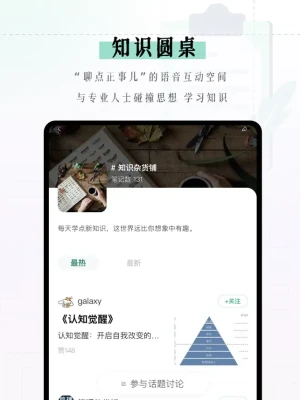 也可以在语音直播间与大咖进行圆桌讨论,进行思想碰撞;