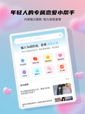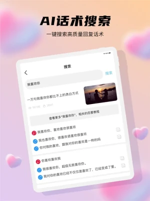 聚会时如何搭讪?相亲时只能尬聊?恋爱中不会哄对象?语小恋,一款拥有海量恋爱话术,教程的APP,动动手指搜一搜就能获得高情商回复话术,现实场景全覆盖。情场高手每日分享实战教程案例,让恋爱脱单变得更简单!