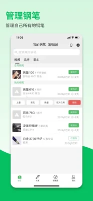 钢笔墨APP是一款专门记录钢笔墨水的软件工具,除了记录钢笔和墨水,还记录钢笔的状态(使用中和已清洗)、上墨日期、状态持续时间及超长时间提醒。用户可以添加钢笔,添加完成之后,操作每一支钢笔的上墨、清洗、换墨、设为日用及删除功能。