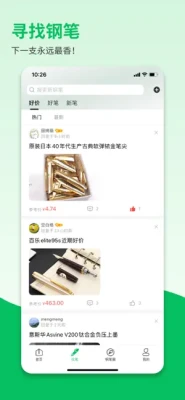作为玩笔的一员,除了日常使用钢笔写写字外,我们同样对下一支新的钢笔充满期待。钢笔墨app的找笔板块分为3种分类:好价、好笔、新笔。好价是某些电商平台的钢笔促销活动,好笔是笔友分享自己喜欢的钢笔,新笔就是新上市的钢笔。”找笔“板块的所有信息均由笔友发布,下面的评论区则是笔友交流的区域,希望大家多多认识新的朋友。