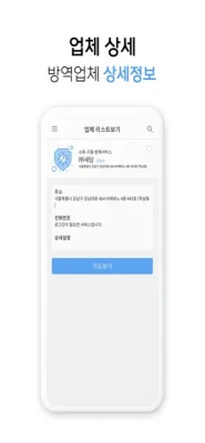 내 주변의 방역 업체를 찾을 수 있는 앱입니다. 약 500개의 업체 중 내 주변에 있는 업체를 찾아 필요한 서비스를 받아보세요~