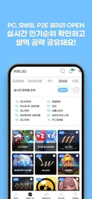 게임별 게시판에서 플레이하는 게임의 아이템 시세 및 공략, 정보를 획득할 수도 있습니다 :)