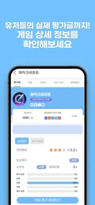 실제 유저들의 생생한 플레이 후기에, 게임과 수익성 평가까지 알아볼 수 있어요.