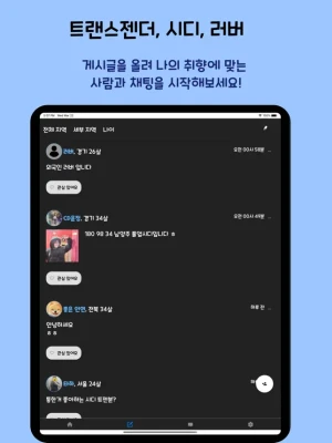소통의 장: 다양한 성별 정체성과 성적 지향을 가진 커뮤니티원들과 이야기를 나누어 보세요.