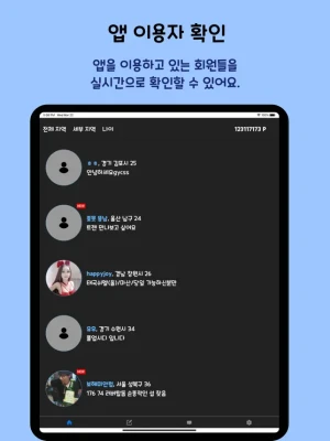 본 앱은 성매매를 목적으로 하지 않으며, 청소년 보호법을 준수하고 있습니다. 이를 위반할 시 형사처벌의 대상이 될 수도 있습니다.